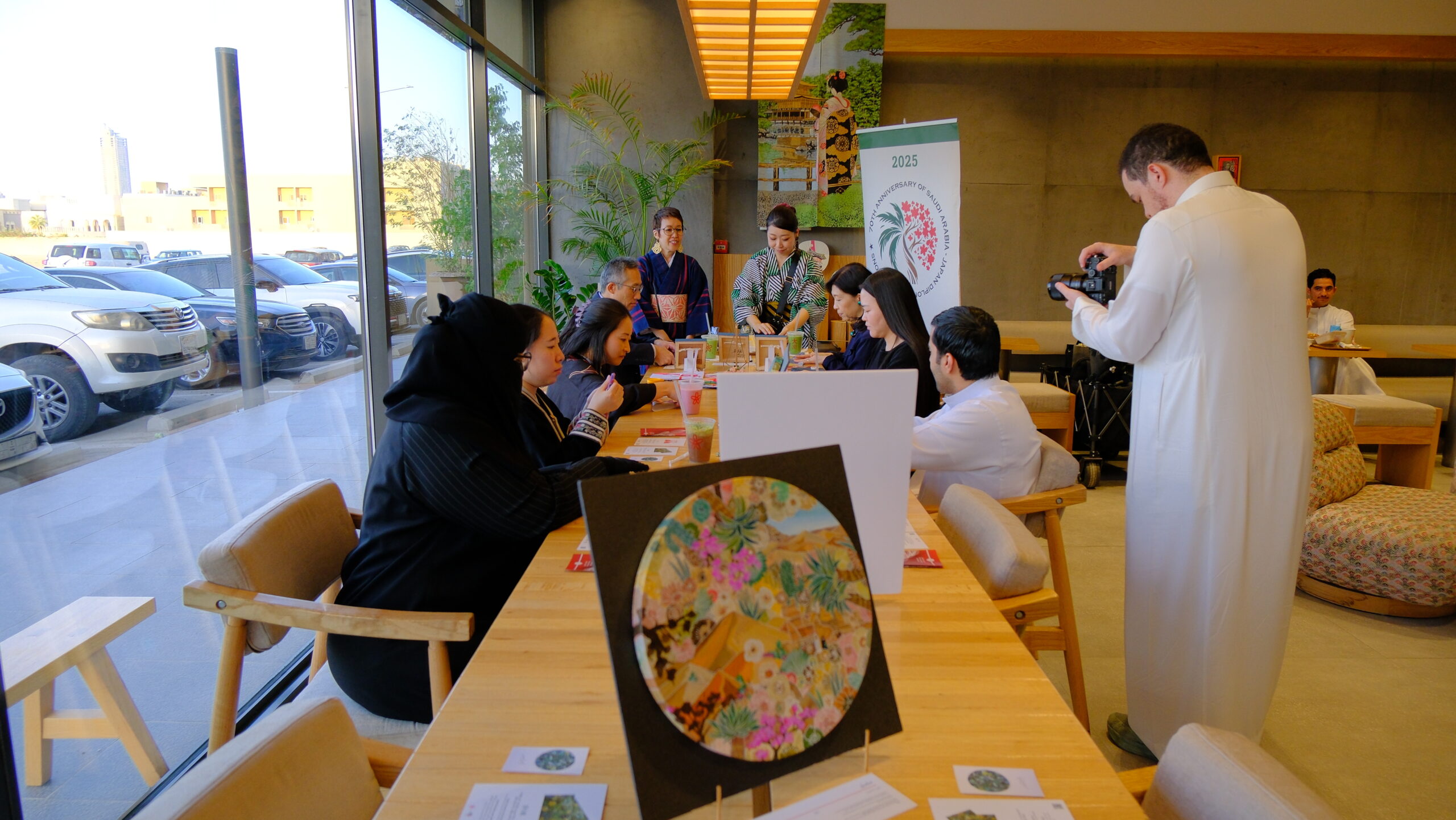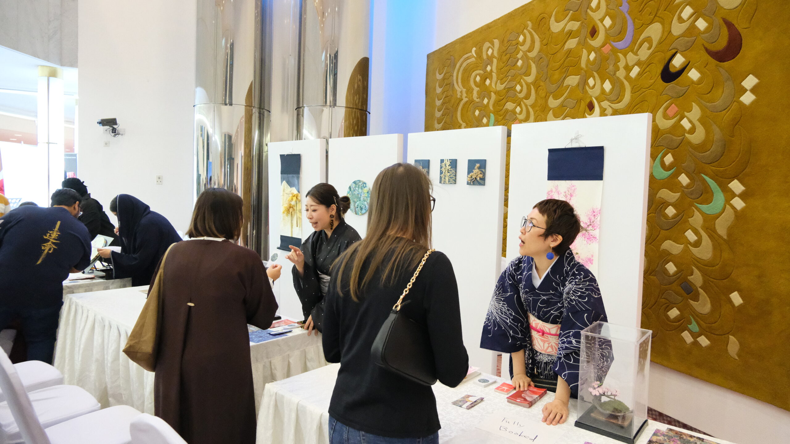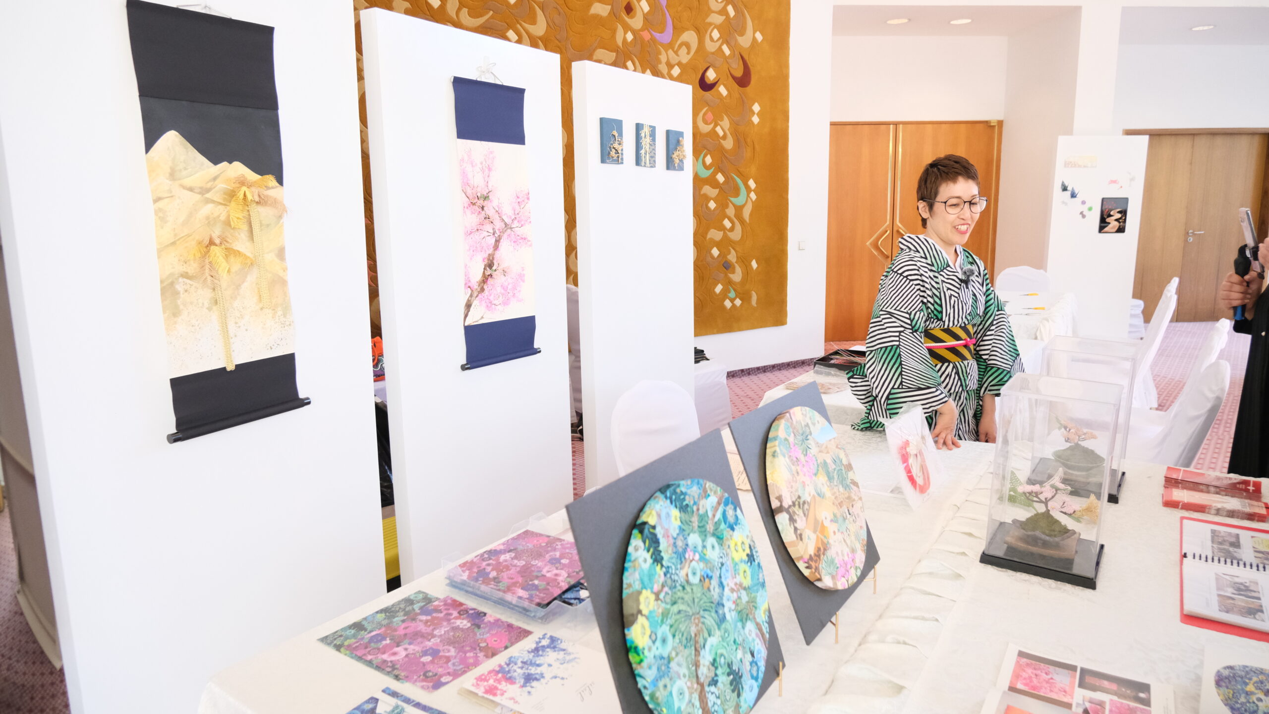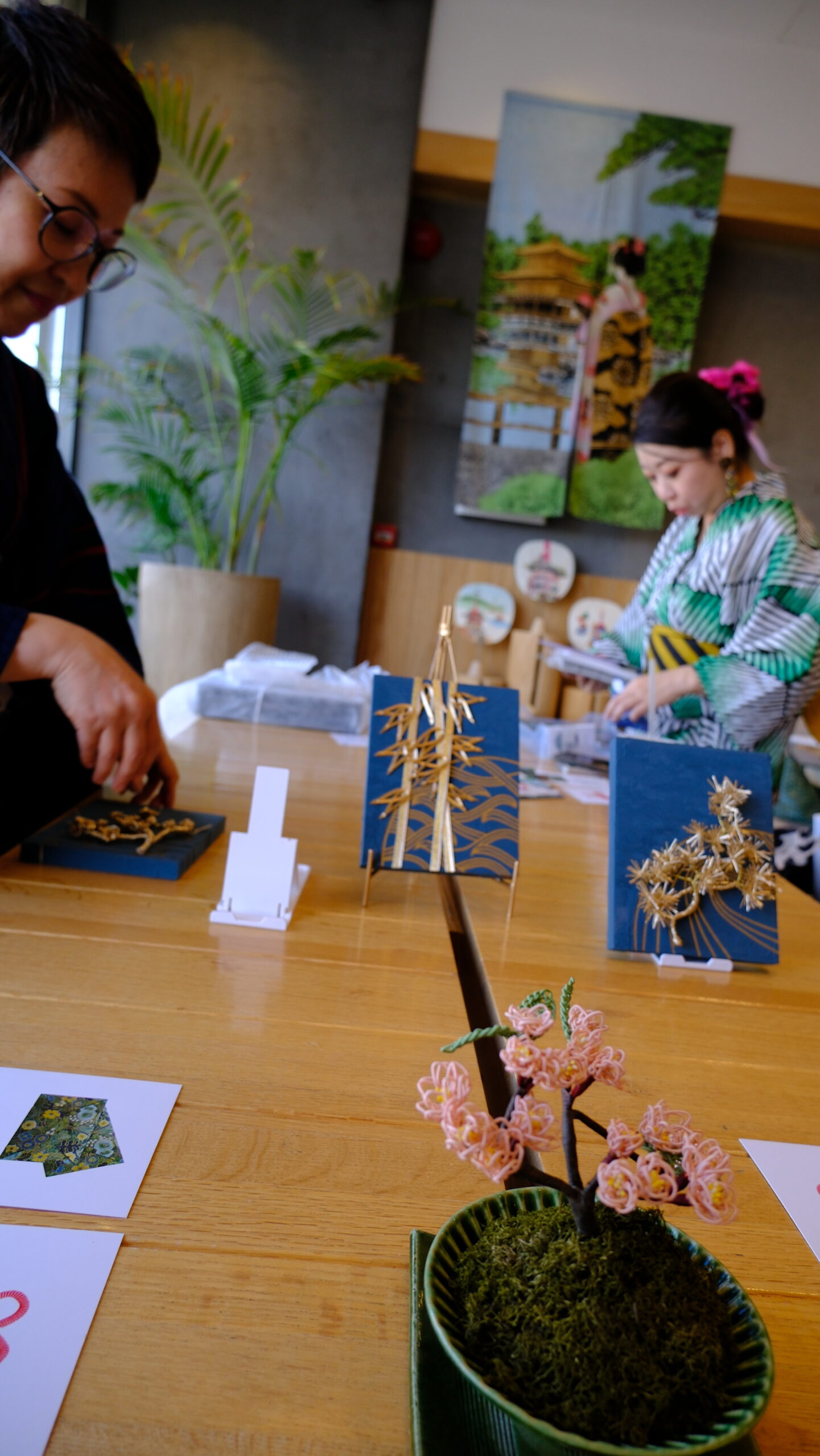 そしてレセプション前の棚には喜結の作品「歳寒三友(さいかんのさんゆう)」を展示していただいております。