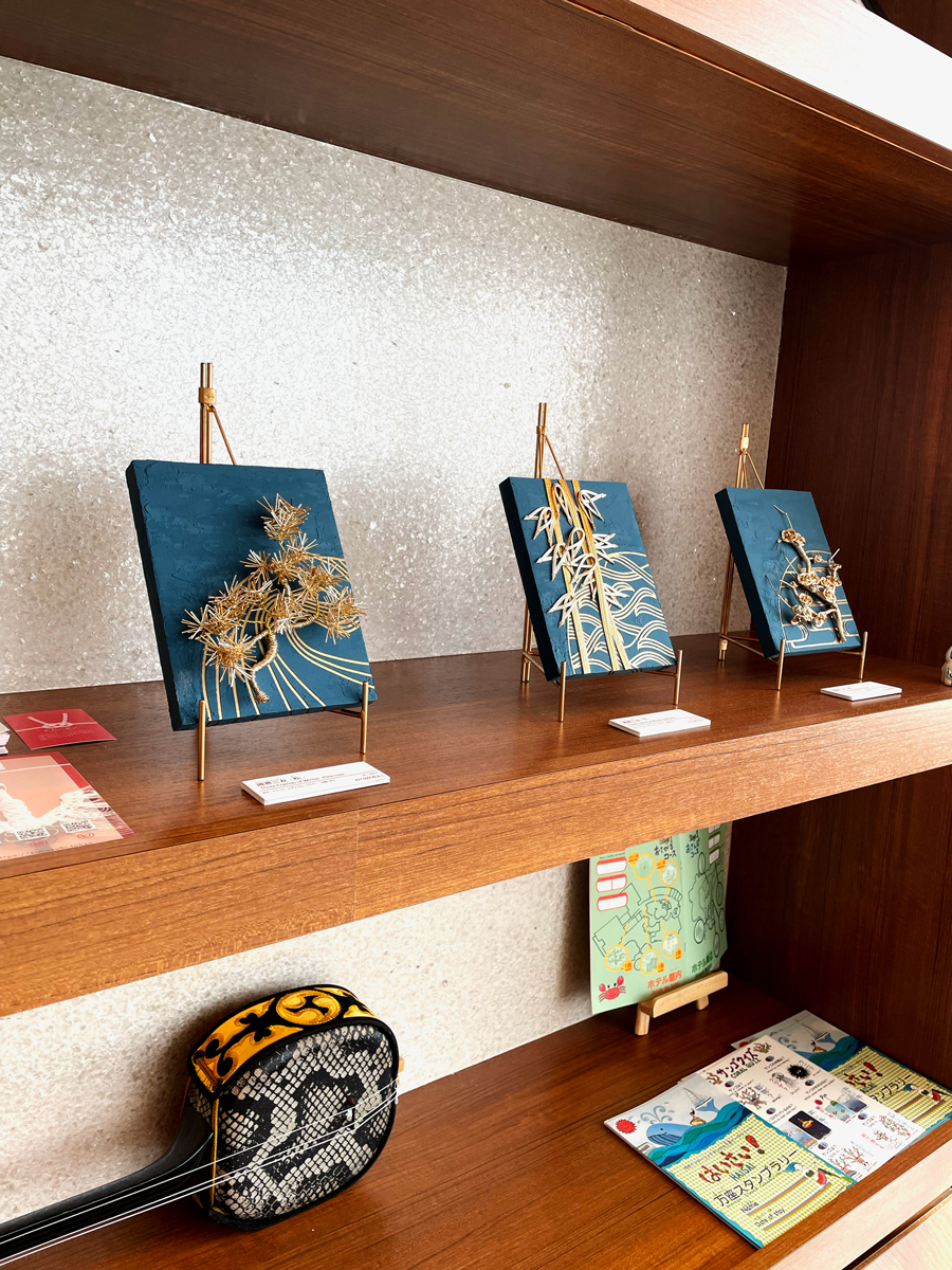 そしてレセプション前の棚には喜結の作品「歳寒三友(さいかんのさんゆう)」を展示していただいております。